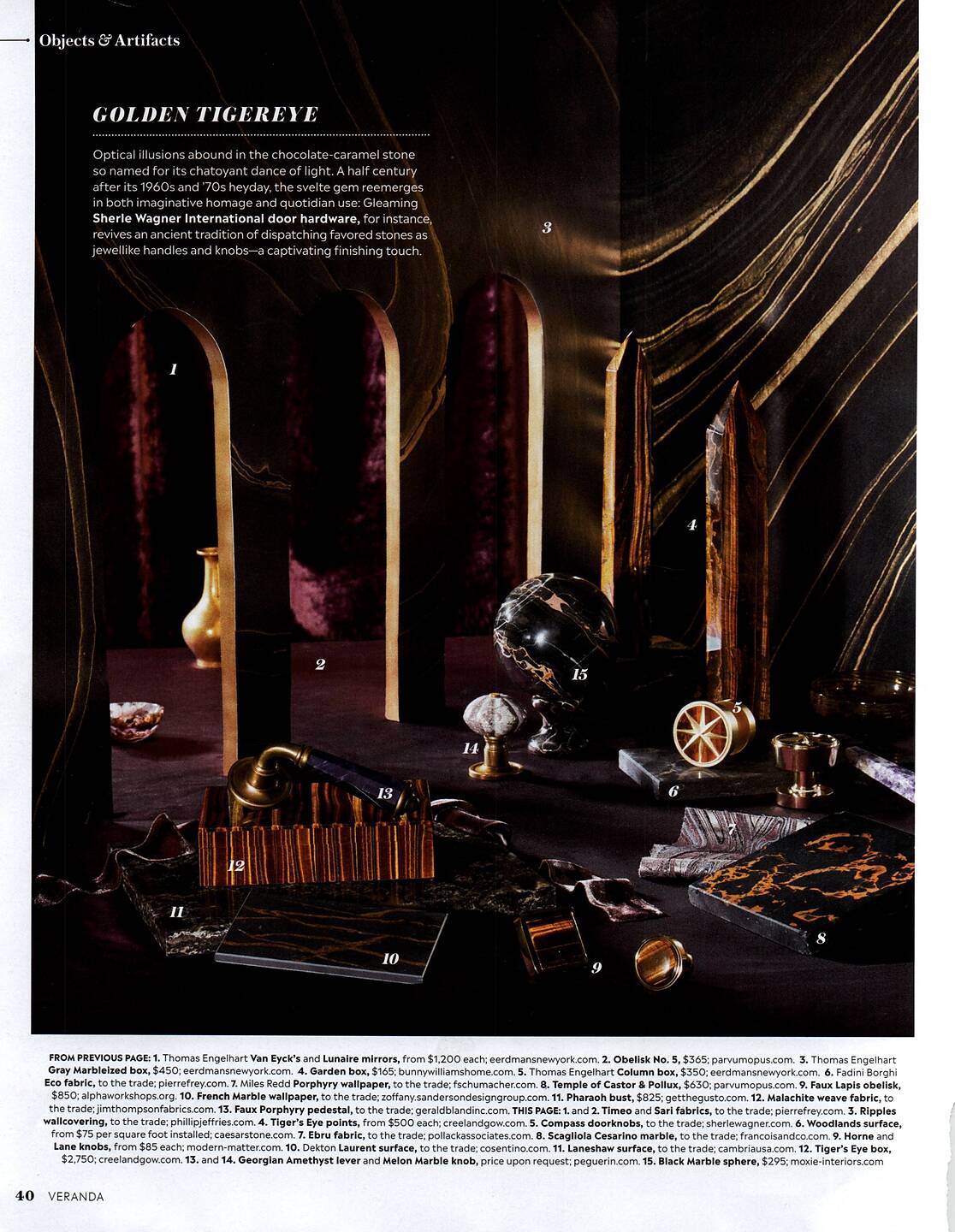In the article "Rare Specimens" featured Ripples 9272-A Paneled Black on Oro Gilded Metallic Leaf amongst other optical illusive products.