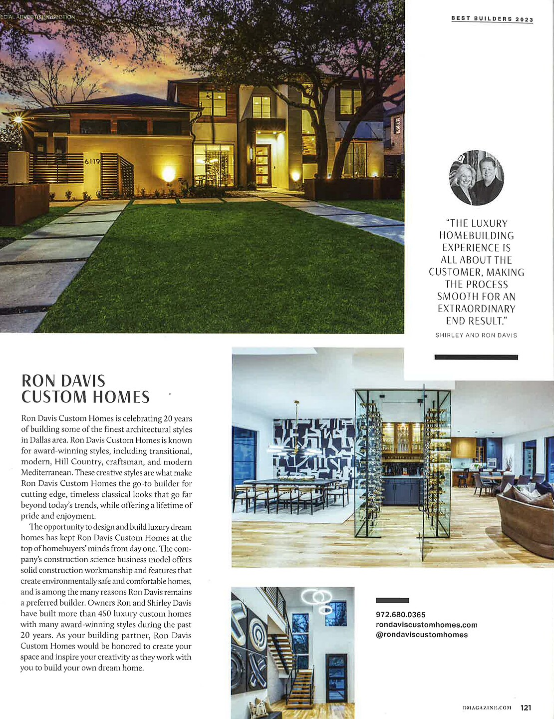 In article "The Best Builders in Dallas 2023," Ron Davis Custom Homes featured Offset 9137 Inverted black on Moonlight Silver Star Dust Silk in his client's transitional modern dining room.
