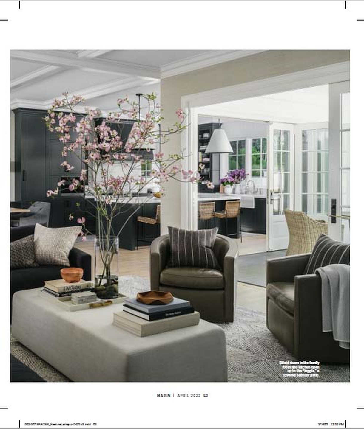 In article, "Modern Classic," interior design firm Taylor Yang features Bermuda Hemp 5528 Dew Drops in the family room of a client's timeless Larkspur home.