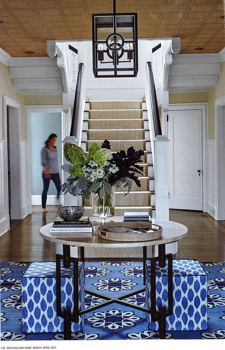 In article, "The Family that Plays Together," interior designer Julie Stein of Julie Stein Interior Design featured Rivets 5707 Bronze On Jute in the entry way of client's home.