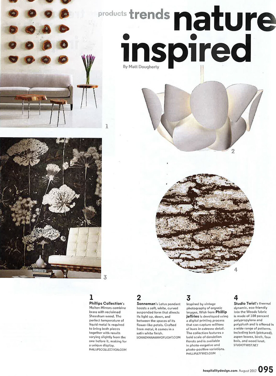 In article, "Nature Inspired," a vignette of Wish 6106 Negative on White Paper Weave is featured.
