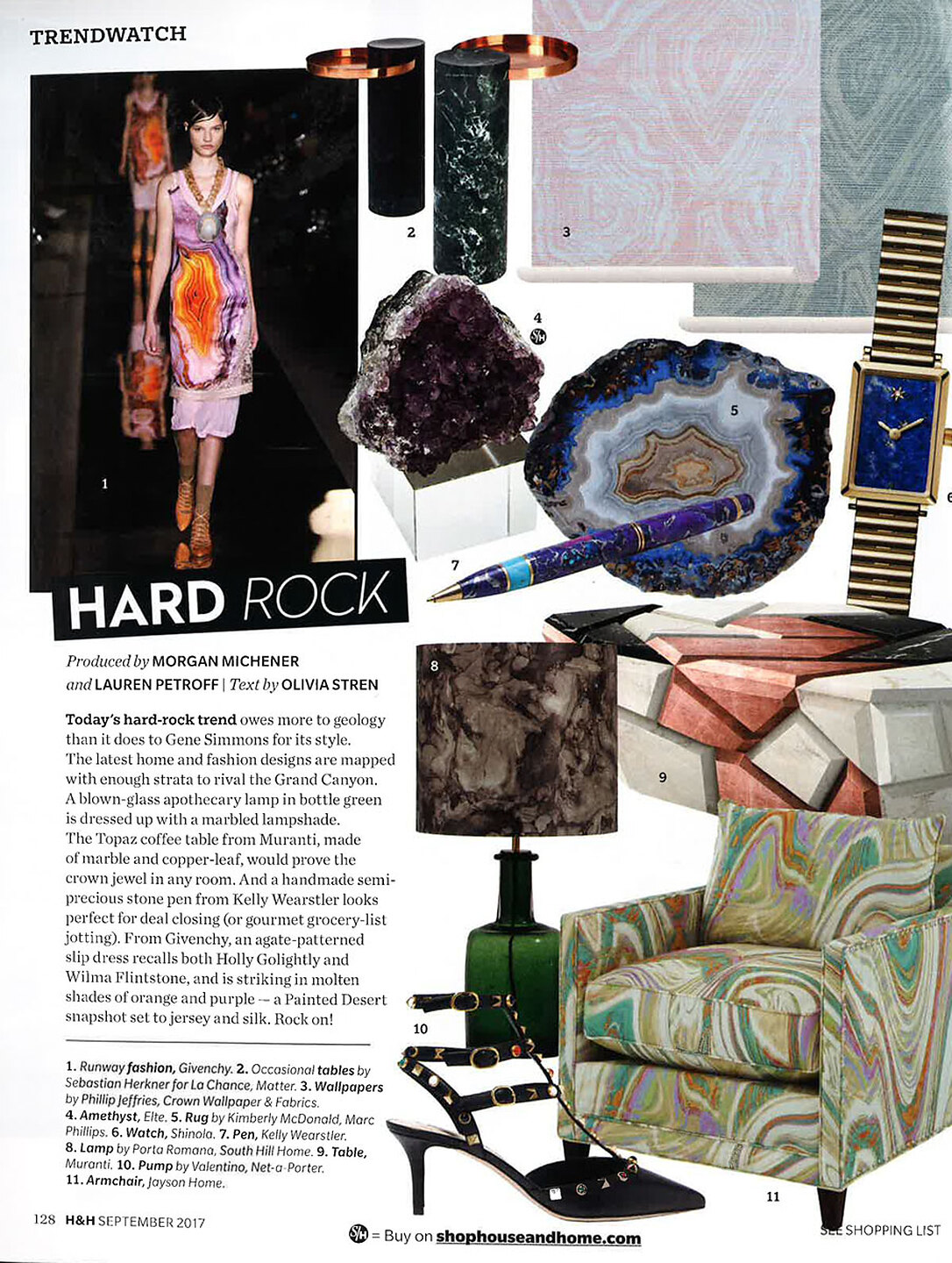 In article, "Hard Rock," product shots of Agate 5931 Morganite on Marshmallow Manila Hemp and Agate 5934 Teal on White Glam Grass are featured.