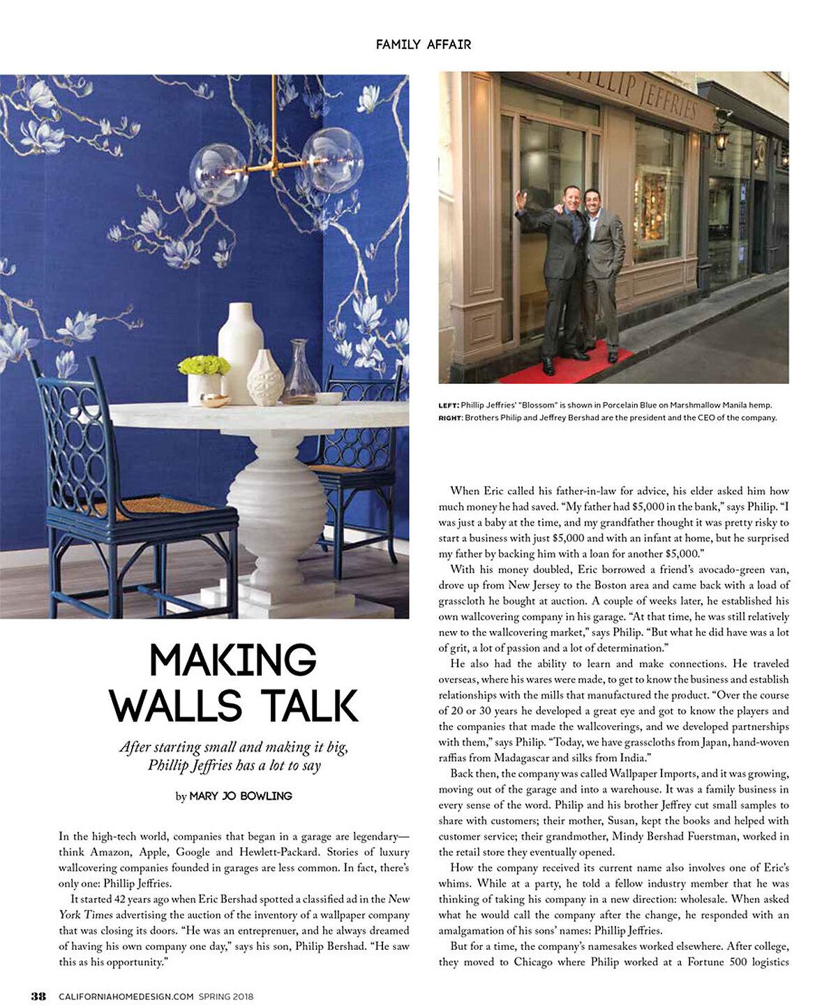 In article, "Making Walls Talk," the story of Phillip Jeffries founding by Chairman Eric Bershad, the company's history, and present day success as an industry leader is told via an interview of President Philip Bershad.