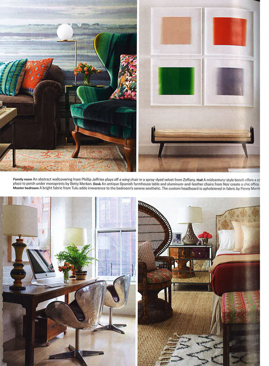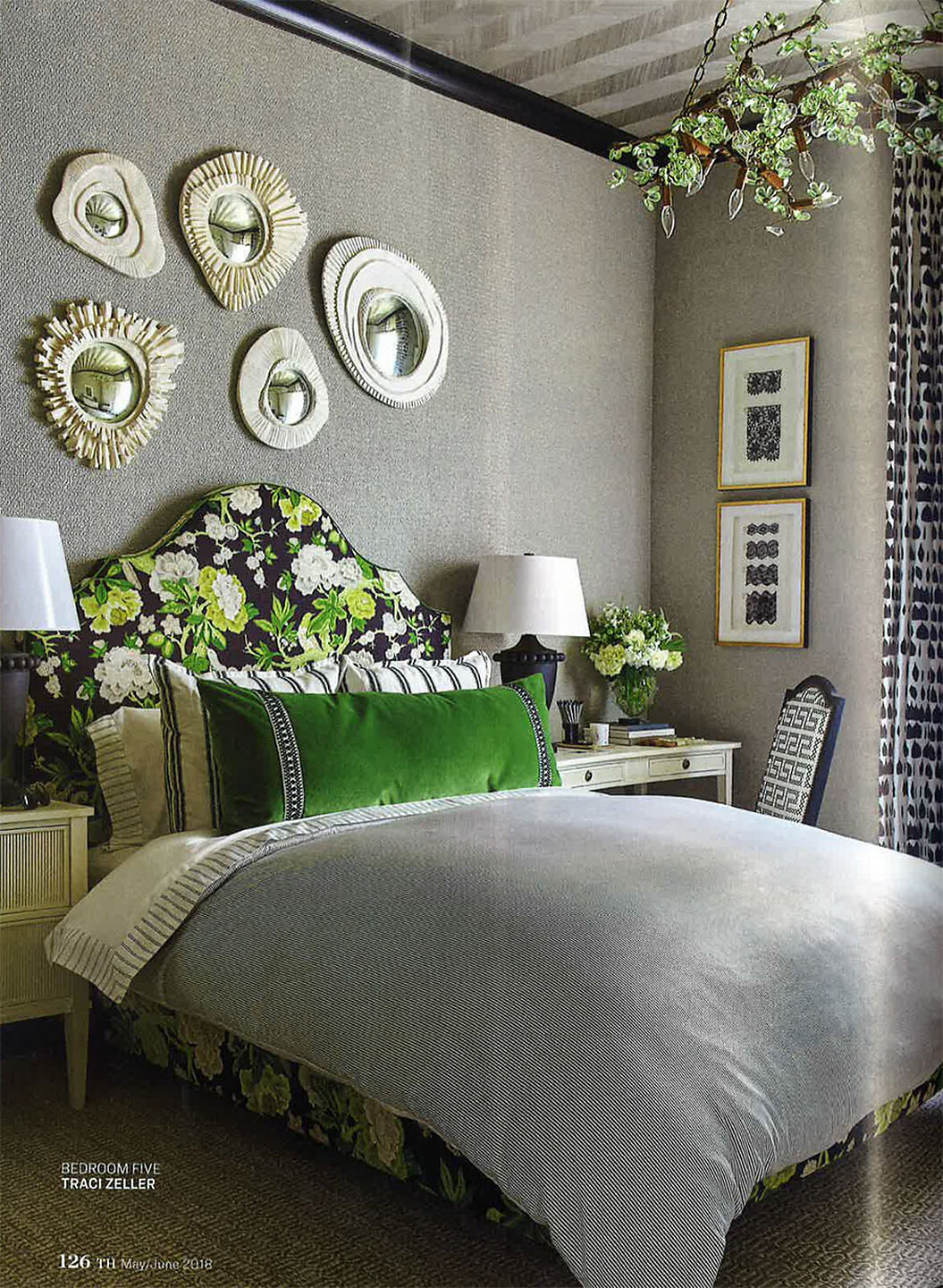 In article, "Rainbow Effect," interiro designer Liliane Hart featured Fade 7226 Sea Spray on White Manila Hemp in the living room of a client's home. In article, "The Best Little Showhouse in Texas," interior designer Traci Zeller featured Bijou Knits 5031 Gris and Against the Grain 4272 Grey Clogs in a bedroom of the 2017 Dallas Decorators Showhouse.