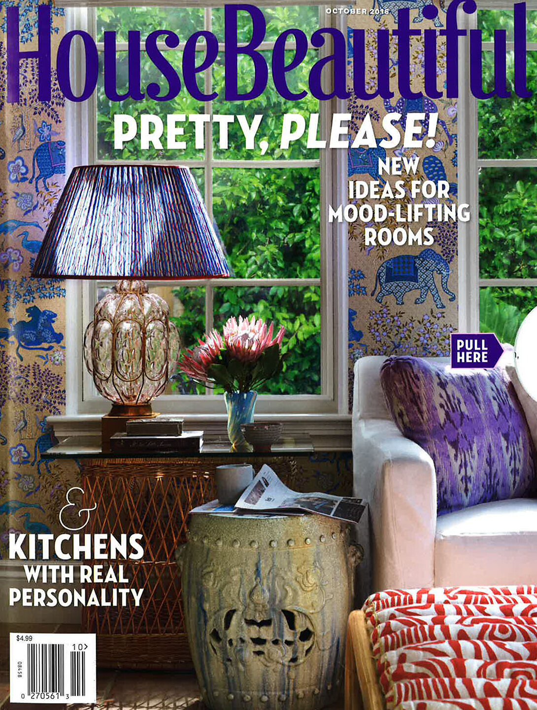 In article, "Manor Reborn," Interior designer Gideon Mendelson featured Framed 5732 Ice Blue in the living room of a client's home and Chevron Chic 3294 Elephant Tusk in the powder room of a client's home.
